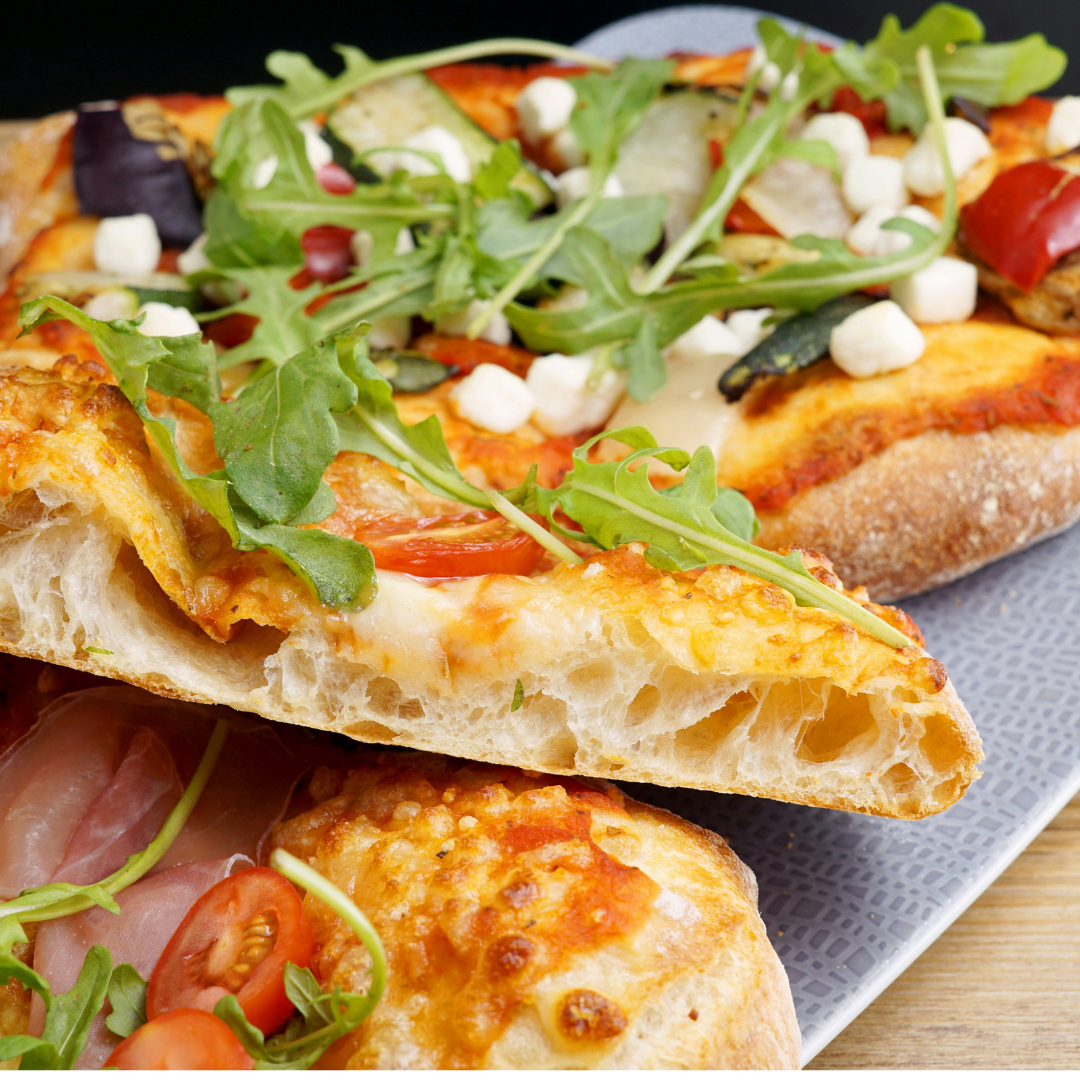 La pala alla romana, conosciuta anche come pizza in pala, si distingue per il suo impasto riccamente idratato e la sua forma allungata.