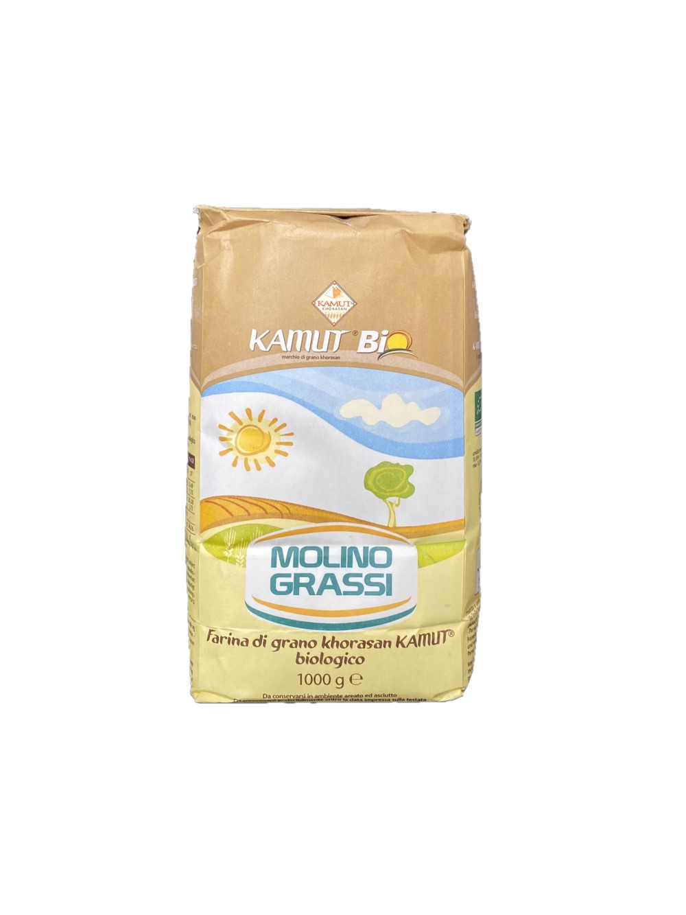 Il Kamut® è un marchio registrato fondato nel Montana di una particolare varietà (mai incrociata) del famoso grano Khorasan. Come cereale è sicuramente uno dei più validi a livello nutrizionale e presenta caratteristiche organolettiche diverse rispetto al grano tenero. Essendo un antenato del grano duro la farina di grano Khorasan Kamut® viene utilizzata per pane, pasta e dolci.